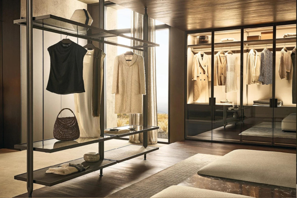 Disponible en deux configurations, murale ou au plafond, Lexington reprend le leitmotiv et les finitions du système Senzafine. Des montants en finition peint champagne ou ardoise auxquels s'accrochent des étagères, des commodes et une large gamme d'équipements tels que des plateaux, des porte-pantalons, des éléments porte-chemises, des porte-sacs et des porte-chaussures caractérisent le système nuit Lexington qui complète l'environnement de la maison avec son jumeau en version système jour.