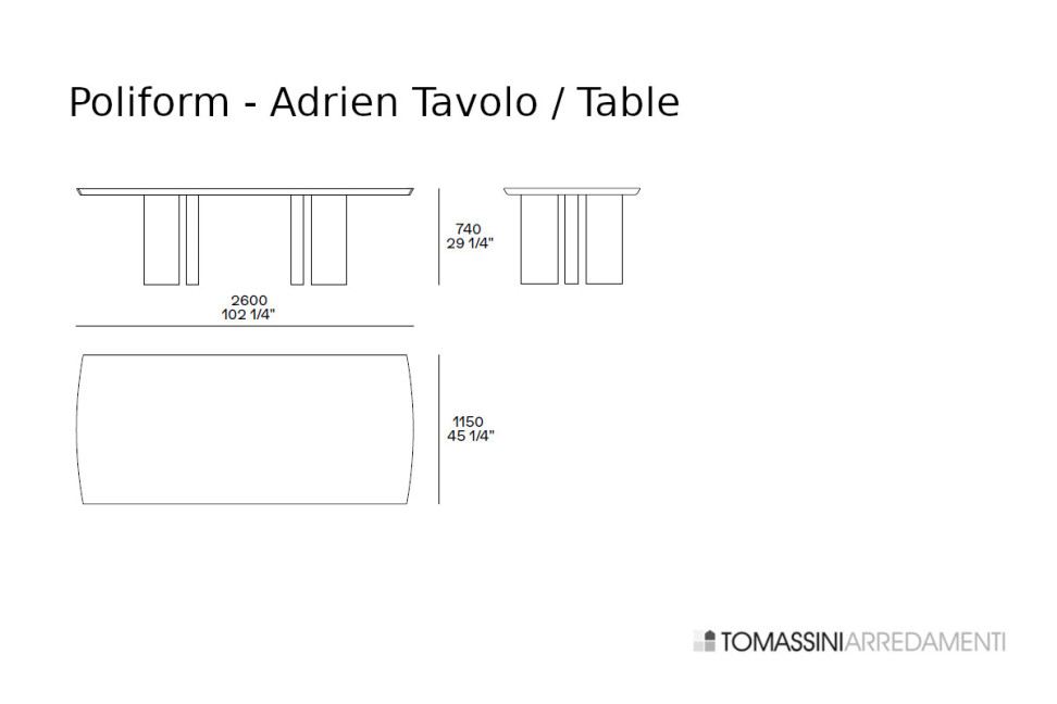 La table Adrien de Poliform, conçue par Jean-Marie Massaud, représente un équilibre entre rigueur formelle et présence sculpturale. Sa silhouette, définie par un profil essentiel et des pieds positionnés de manière asymétrique, réinterprète la classicité de la table conviviale dans une perspective contemporaine. Chaque élément, des proportions du plateau à la solidité des pieds cylindriques, est étudié pour transmettre une sensation d'équilibre et de force visuelle, rendant Adrien une présence iconique au sein de la zone de salle à manger. La version en bois, naturelle et chaleureuse, souligne l’artisanat du projet, tandis que celle métallique met en valeur le contraste entre la solidité de la base et la brillance des finitions. Les deux versions partagent la même construction géométrique, où les supports verticaux, disposés de manière irrégulière, génèrent une perception dynamique et contemporaine.