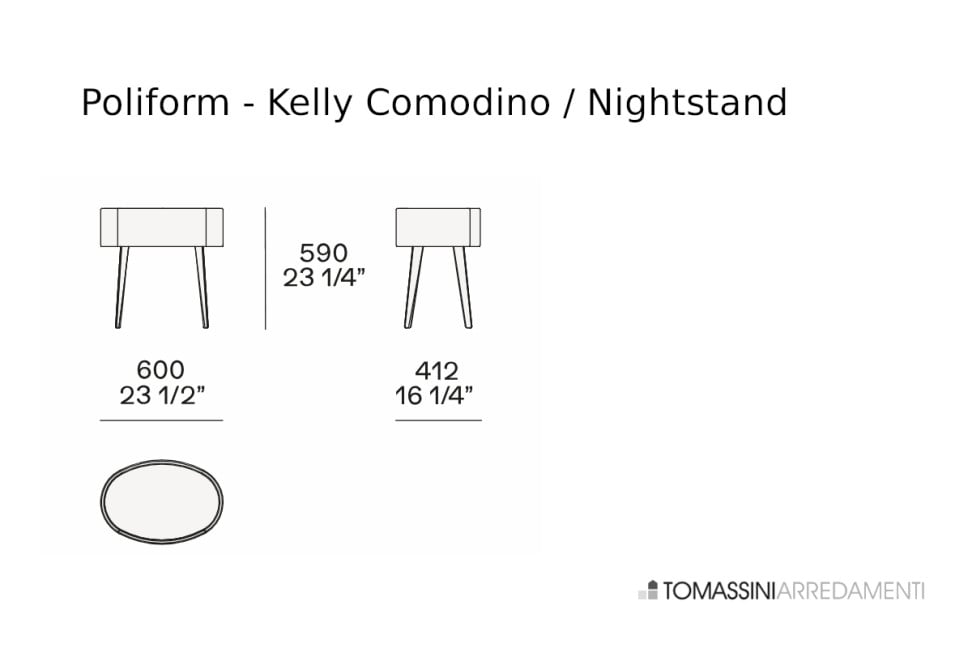 Le table de nuit Kelly de Poliform, coordonnée au lit Kelly, présente une forme ovale et est caractérisée par des lignes simples et essentielles. La structure est disponible en chêne spessart ou en orme noir. Le plateau peut être en marbre, cuir, laqué brillant ou mat. Le projet a été signé par Emmanuel Gallina, designer français ayant déjà créé plusieurs produits à succès pour l'entreprise italienne.