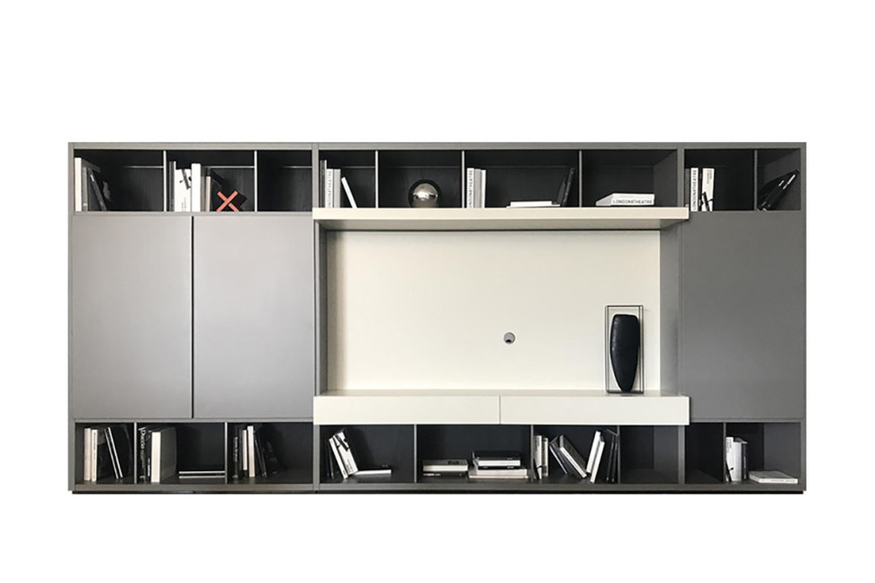 La bibliothèque Wall System est un projet original du Centre de Recherche et de Développement de Poliform, entreprise leader dans le secteur du mobilier de design Made in Italy qui fait de l’attention aux détails son point fort.