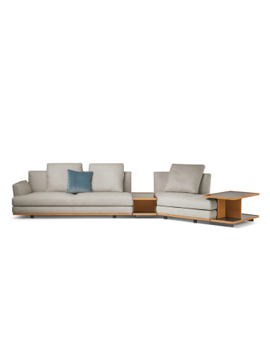 Ce canapé, conçu par Ludovica et Roberto Palomba, est composé de quelques modules qui, combinés entre eux, offrent d'infinies possibilités compositives. Come Together est un canapé au style extrêmement moderne caractérisé par des formes contenues, qui offrent un lieu idéal pour la conversation. Pour mettre en valeur ses formes, Poltrona Frau offre la possibilité d'ajouter une bande en cuir qui court le long de toute la base. La collection Come Together inclut également une série d'éléments accessoires, de contenants et de tables basses utiles pour poser des objets, des livres ou des verres.
