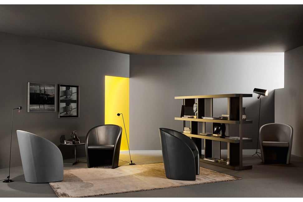 Conçu par Elena Valle et Massimo Vignelli dans les années 1980 pour accueillir les invités des journaux télévisés, le fauteuil Intervista de Poltrona Frau est l'un des fauteuils design les plus célèbres de l'histoire du design italien.