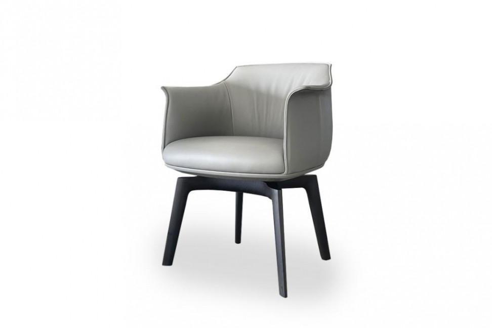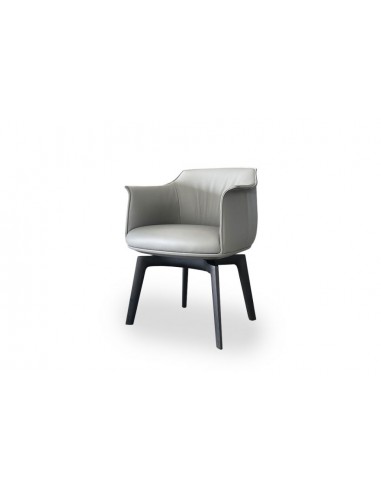 Le fauteuil pivotant Archibald en offre expo dans notre showroom est doté d'une base en bois de frêne teinté couleur wengé et d'un siège recouvert de cuir de couleur grise. Le modèle est pivotant, avec mécanisme de retour.