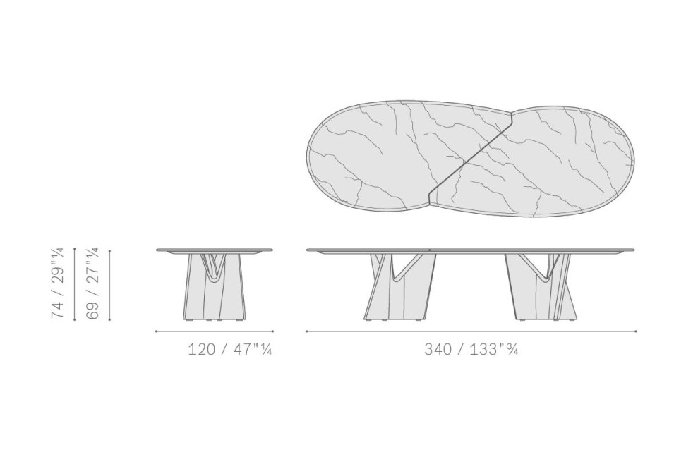 Disponible en version ovale de cm.220x124 et en double ovale décalé de cm.340x120, avec la table Infinitamente nous avons devant nous un véritable objet d'art d'un grand impact scénique et irrécupérable. Avec ses formes, le designer Lazzeroni souhaite évoquer à la fois la complémentarité du Yin et du Yang ainsi que la complétude de l'infini. Rendu unique et inimitable également par la matière première dont il est constitué, Poltrona Frau avec la table Infinitamente souhaite offrir un véritable instantané d'un paysage naturel et en faire un symbole du luxe contemporain.