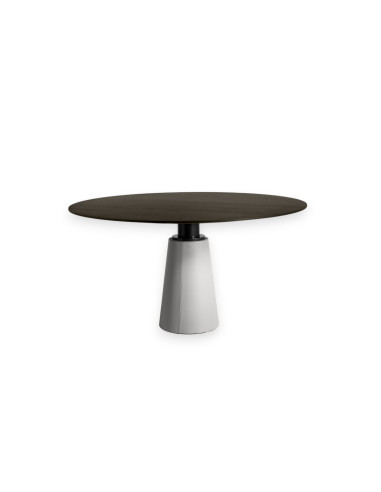 La table Mesa de Poltrona Frau est une icône du design formel conçue en 1985 par Elena Valle et Massimo Vignelli, dont la caractéristique fondamentale est l'extraordinaire combinaison d'un cercle et d'un cône, deux formes géométriques essentielles qui, une fois réunies, donnent vie à une table sculpturale et imposante.