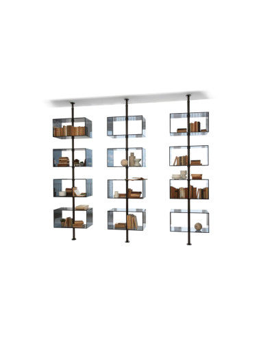 Domino di Porada est une bibliothèque ou un mur équipé formé par une colonne en métal fixée au mur ou au plafond. Les conteneurs en cristal sont fixés à la colonne par des anneaux de rotation qui permettent à ceux-ci de tourner indépendamment les uns des autres.