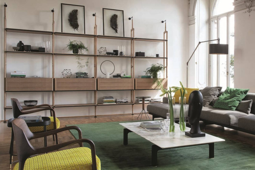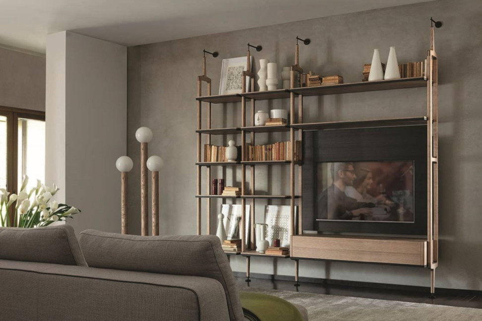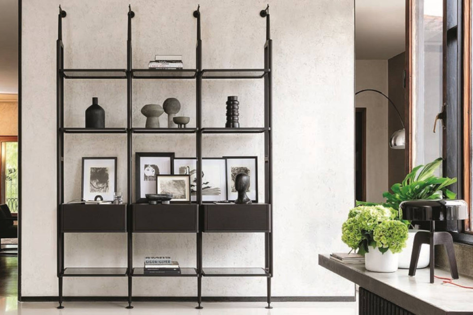 La bibliothèque modulaire Aria est l'une des nouveautés que l'entreprise italienne de mobilier Porada a présentées au Salone del Mobile de Milan et est maintenant incluse dans le nouveau Catalogue Nineteen.