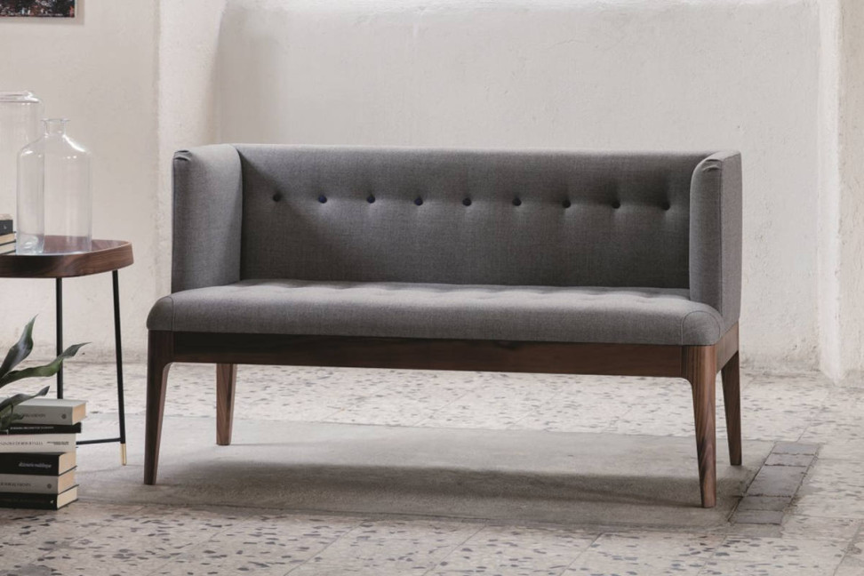Wendy repose sur une base en noyer massif disponible en plusieurs finitions. L'assise et le dossier, recouverts des tissus et des cuirs de l'échantillon Porada, présentent un travail capitonné. Sur demande, il est possible de revêtir l'assise et le dossier de manière indépendante, et il est également possible de commander des boutons ton sur ton ou en contraste.