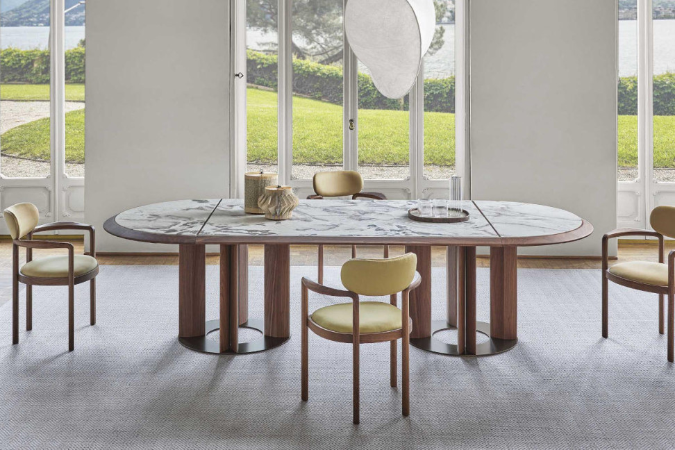 La chaise Dione se distingue de toutes les autres chaises par sa brillante réinterprétation du modèle classique à pozzetto. Ses lignes sinueuses et son design essentiel mettent en valeur le savoir-faire dans le travail du bois. La chaise Dione offre un confort exceptionnel grâce à son rembourrage doux et à ses accoudoirs accueillants. De plus, il est possible de personnaliser le revêtement du dossier et de l'assise avec une large gamme de tissus de la collection Porada, complétant ainsi le look selon ses goûts.