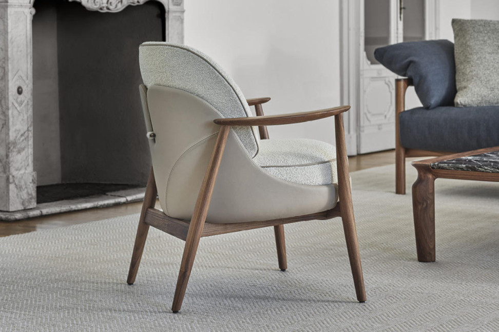 Le fauteuil Ginkgo de Porada, conçu par Niccolò Devetag, présente des formes élégantes et sophistiquées qui en font la protagoniste indiscutable de chaque salon.