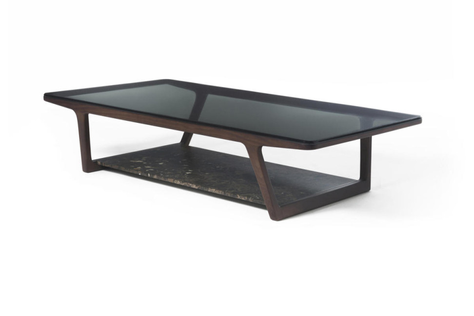 Le table basse Script de Porada, polyvalent et adapté pour meubler tout type d'environnement, est réalisé en trois modèles différents et est constitué d'une structure en bois massif de frêne avec un plateau en marbre, ou, dans la version à deux plateaux, avec un plateau supérieur en verre fumé trempé et un plateau inférieur en marbre.