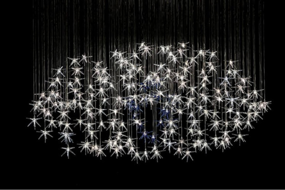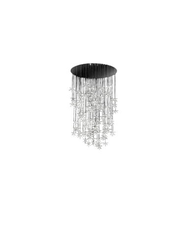 Dans la collection de lampes suspendues de Reflex Angelo, se distingue le lustre signé R&C Reflex, Stella : une cascade d'étoiles en verre.