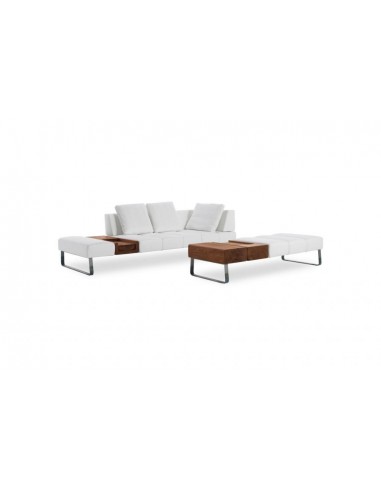 Des lignes simples et des formes élégantes sont enrichies de précieuses coutures apparentes qui tracent les profils du canapé et mettent en valeur le cuir du revêtement, en faisant un élément de décoration unique. De plus, grâce à la possibilité d'insérer des modules en bois qui servent de surfaces de support, Patmos est capable de s'adapter à tous types de besoins, laissant libre cours à sa propre imagination.