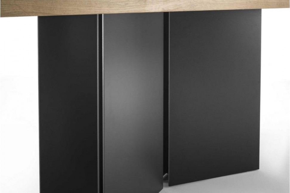 Ambo est disponible en une seule dimension et est composé d'un plateau en bois massif dans diverses finitions avec fuite centrale et bords droits, tandis que la base est réalisée en tôle de fer dans les couleurs de la collection.