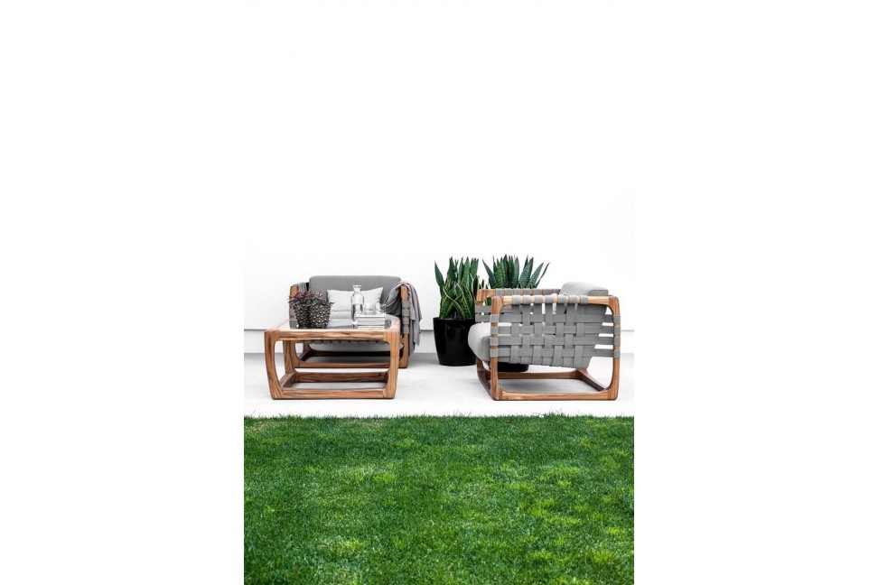 Le table basse d'extérieur Bungalow a été présenté par la célèbre entreprise italienne Riva1920 au Salone del Mobile de Milan 2019, élargissant ainsi la collection homonyme.Ce projet a été conçu par l'esprit créatif de Jamie Durie, designer international primé et fondateur du studio Durie Design, et reflète pleinement la philosophie “transterior” du designer, basée sur l'implication de l'environnement extérieur dans les projets de design, offrant la possibilité d'un contact accru avec la nature. Le table basse d'extérieur Bungalow embrasse pleinement cette approche de conception, comme le montre l'utilisation de matériaux naturels tels que le bois et le marbre.