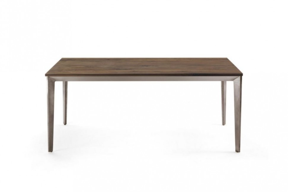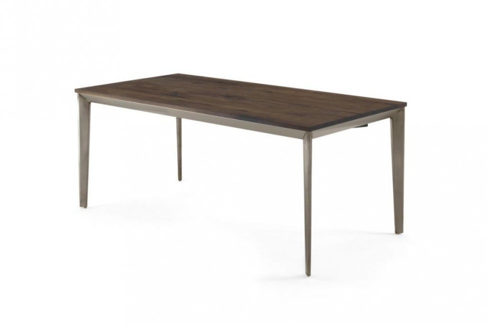 La table Prime Wood présente un plateau en bois massif à lattes collées, dans les différentes finitions de la collection, tandis que la base est en fer peint. En plus de la version fixe, Prime Wood est également disponible dans la version avec plateau extensible, caractérisée par un système innovant avec des rails en aluminium parfaitement intégrés dans la structure.