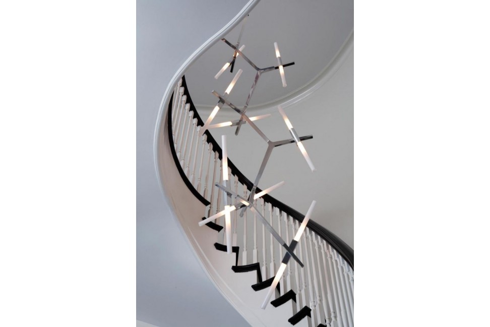 La collection de lampes Agnes, signée par la marque new-yorkaise d'éclairage Roll&Hill, reflète l'idée de la designer Lindsay Adelman de transformer la nature labile de la lumière en quelque chose de concret et durable.La lampe suspendue Agnes se distingue par ses lignes nettes et définies qui constituent sa structure en aluminium, disponible dans les finitions noir, bronze, nickel poli et laiton brossé. Le corps central présente de nombreuses ramifications, qui, à travers des joints réglables, soutiennent les diffuseurs en verre pointus, également disponibles avec un découpage droit. Les sources lumineuses, selon la version, varient en nombre, de 2 à 24 éléments. En plus du modèle suspendu, la collection Agnes comprend également la lampe murale, le chandelier et est déclinée dans la ligne Astral, caractérisée par une configuration symétrique et radiale.