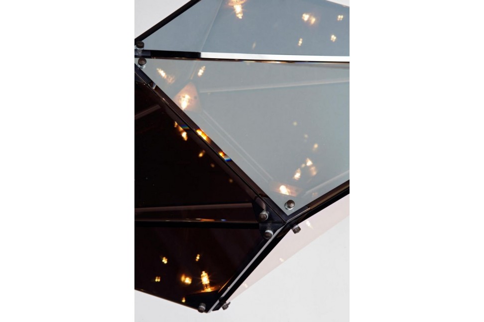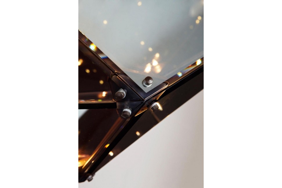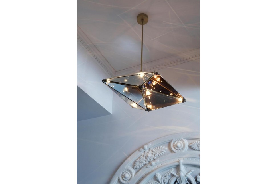 Cette lampe suspendue attire l'attention avec sa structure tridimensionnelle originale en laiton et en acier, formée de deux prismes à la surface facettée et unis par la même base. Lorsqu'elle est allumée, les lumières internes donnent vie à un jeu infini de reflets qui rendent l'ensemble de la structure vivant et dynamique, tandis que lorsqu'elle est éteinte, l'environnement environnant est reflété sur la surface de chaque facette, animant la lampe avec mille couleurs. Maxhedron, disponible en plusieurs tailles, en version verticale ou horizontale, est réalisée dans diverses finitions, acier noir, bronze poli, nickel poli et bronze brossé, laissant un large choix.