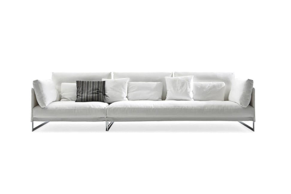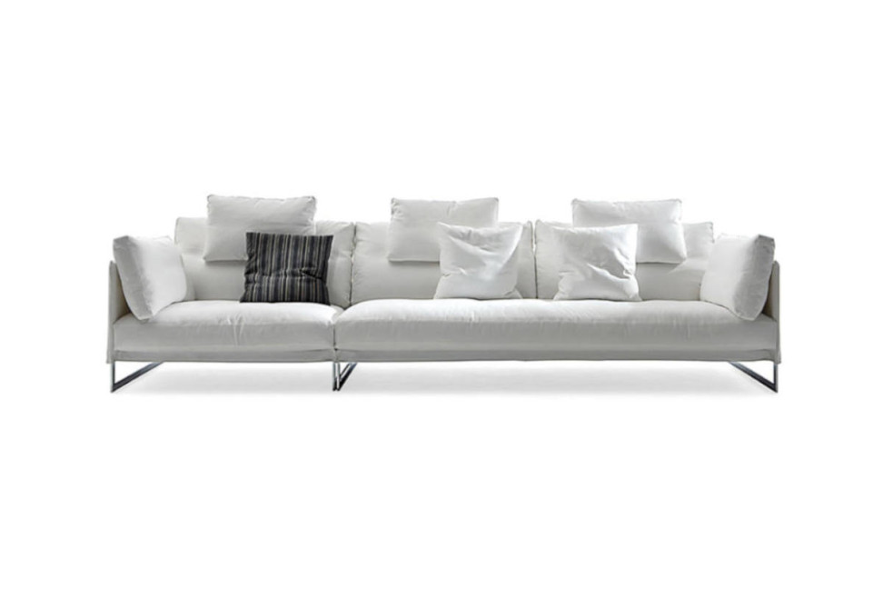 Le canapé Livingston de Saba, signé par Giuseppe Viganò, interprète le thème du confort à travers une structure légère en acier et un siège généreux conçu pour accueillir. La douceur des coussins en plumes d’oie, contenus dans des compartiments recouverts de coton blanc, dialogue avec la précision constructive du cadre. Les pieds en acier chromé donnent du dynamisme à la forme et allègent visuellement le volume du canapé, le rendant adapté à des contextes à la fois domestiques et contractuels.