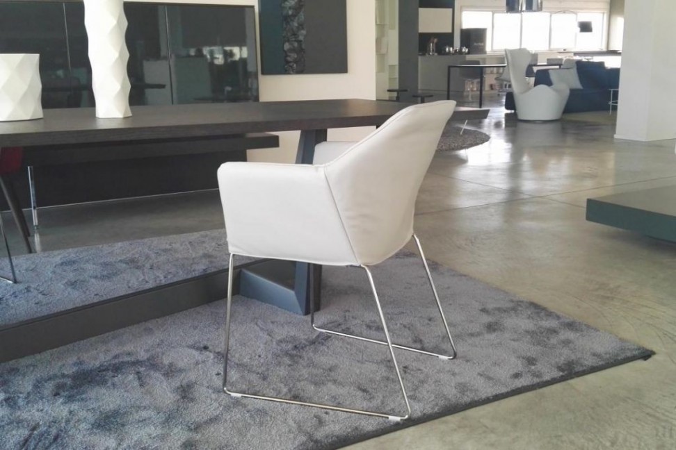 Disponible en deux versions, avec et sans accoudoirs, New York de Saba présente un revêtement en tissu ou en cuir et une fine base en métal qui confère légèreté à la chaise.