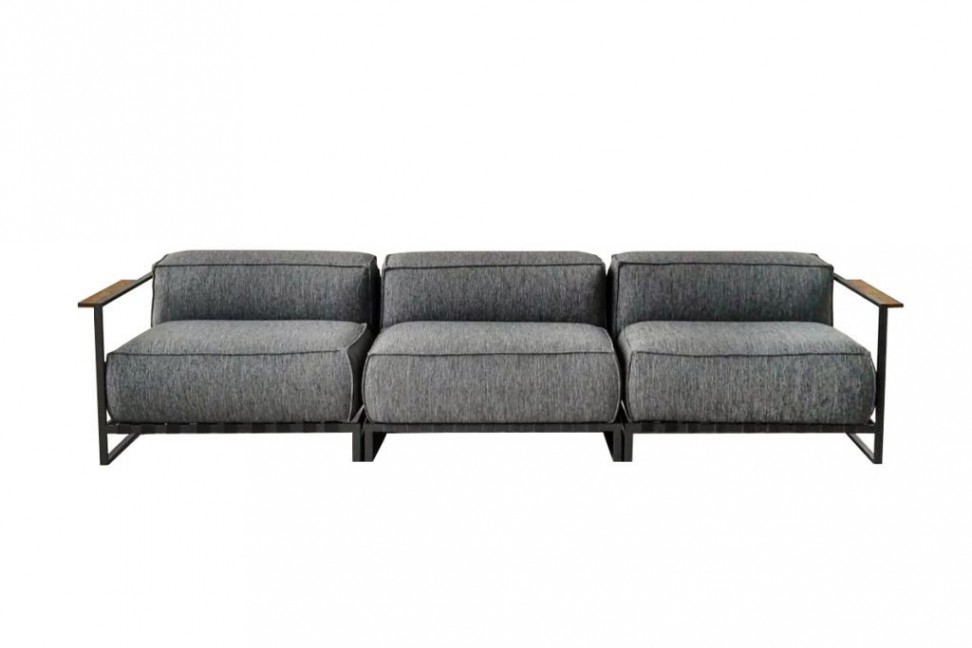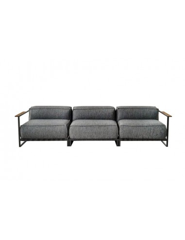 Coussins d'assise et de dossier en tissu de couleur gris foncé, bandes en polyester gris foncé, structure en acier peint en poudre couleur graphite avec inserts en bois.