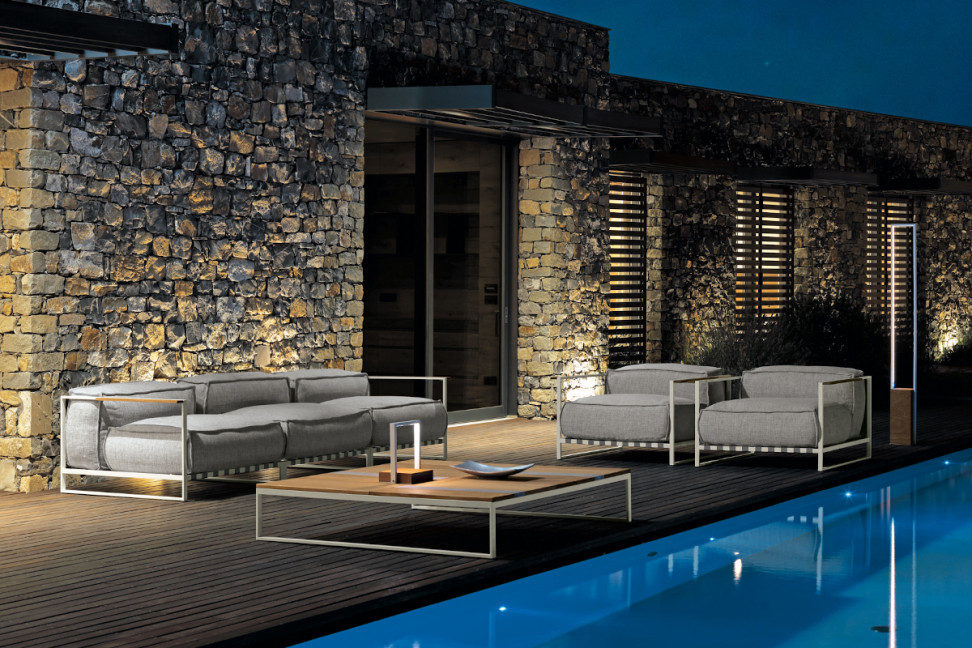 Le table basse pour extérieur Casilda est le mariage parfait entre formes et matériaux conçu par Ramón Esteve pour Talenti.