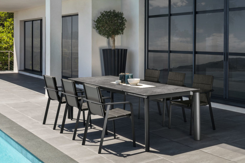 La table extérieure Milo est un élément distinctif pour l'aménagement extérieur. Que ce soit la table ronde, la table rectangulaire extensible ou la table carrée, chaque version présente un design unique et un travail artisanal de haute qualité.