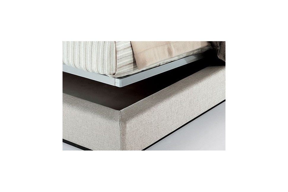 Le lit Japo a une structure avec une tête de lit linéaire et essentielle, rembourrée et recouverte de tissu déhoussable ou en cuir.