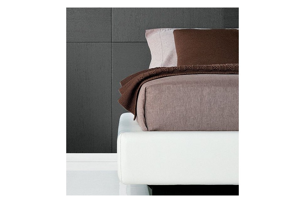 Le lit Quito se compose d'une base rembourrée et recouverte de tissu amovible ou de cuir, d'une plinthe laquée couleur anthracite et d'une originale tête de lit à carreaux en bois combinables à volonté. Sur demande, il est possible d'équiper la base d'un confortable espace de rangement situé sous le sommier.Tisettanta