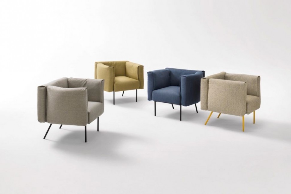 *Le prix indiqué se réfère au fauteuil Noy sur la photo principale, cm.77,5x72,5x74,5h, avec revêtement en tissu couleur jaune paille et pieds en laqué mat noir.