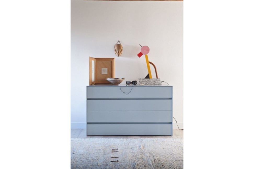 *Le prix indiqué fait référence à la commode Goria sur la photo principale cm.129,8x52,9x76,2h, à 4 tiroirs, avec finition rainure en métal laqué couleur gris.