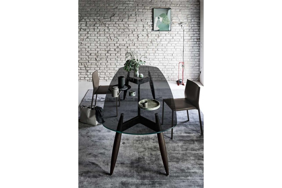 Une évidente intention de rappeler la tradition et le travail artisanal est à la base du projet qui a donné naissance à Fusello, une table où présent et passé se fondent dans un équilibre parfait.Les matériaux précieux dont elle est composée confèrent à cet élément de mobilier un grand charme et un impact visuel notable, accentué par le savoir-faire avec lequel il a été réalisé dans chacune de ses parties. Un trait distinctif de la table est sans aucun doute la base, composée de pieds en bois massif d'une forme particulière qui rappelle celle du fusello, bobine sur laquelle le fil était enroulé pour la fabrication de la dentelle, en un clair hommage à la tradition. En même temps, la géométrie et l'essence de la structure rendent son design moderne et attrayant, surtout dans la version avec plateau en verre, qui laisse entrevoir la base par le haut.