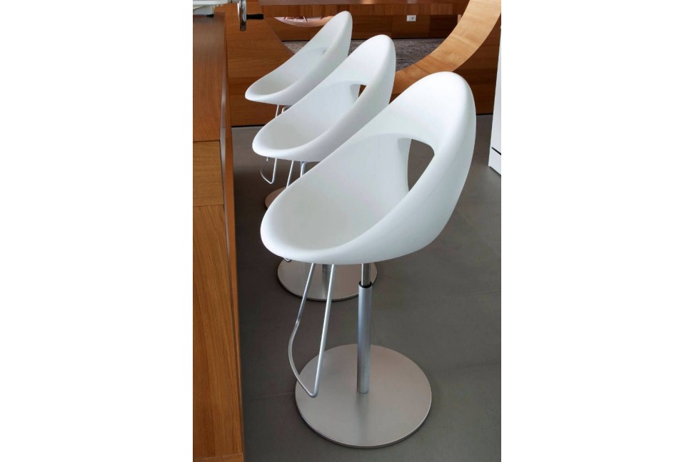 L'ouverture pratique de la coque permet de déplacer le tabouret Lucky avec une grande facilité. Tonon réalise ce tabouret dans de nombreuses couleurs vives, avec une base en bois ou en métaux.