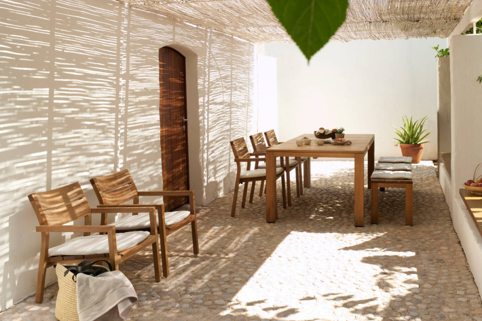 Le banc Kos, conçue par les designers du Studio Segers pour la marque de meubles d'extérieur Tribù, est caractérisée par de larges lattes en teck qui mettent en avant tout son côté robuste et moderne. Le banc Kos représente une alternative décontractée aux chaises de table ou peut être agrémenté de coussins confortables et placé seul dans des jardins et des porches.