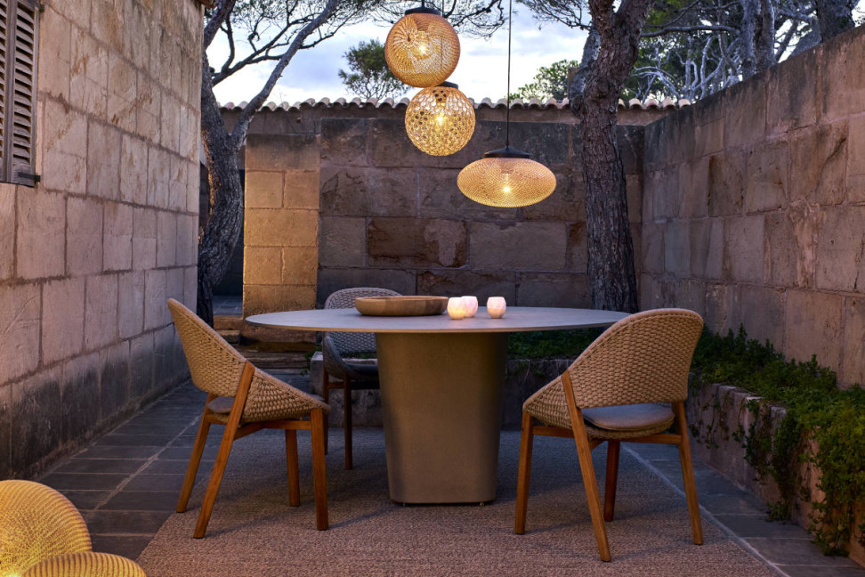 La chaise d'extérieur Elio conçue par Yabu Pushelberg pour Tribù s'inspire du mouvement et des reflets de la lumière à différents moments de la journée.