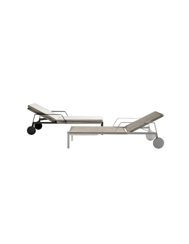 Grâce aux roues, le lit de jardin Nodi peut être facilement déplacé, permettant ainsi de fournir du confort à tout endroit des terrasses et jardins.
