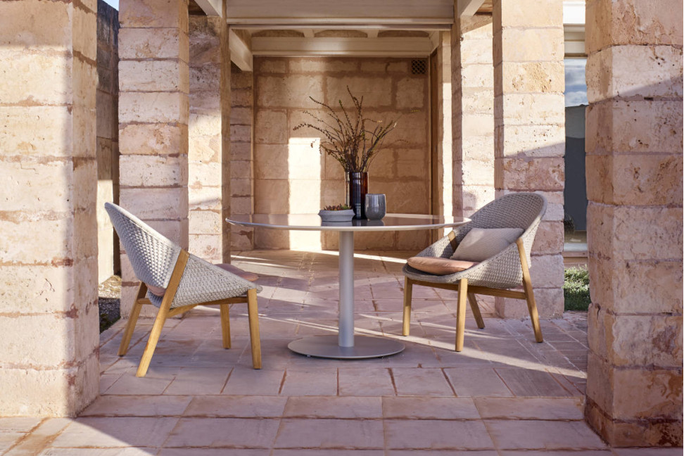 La chaise Elio, conçue par le designer Yabu Pushelberg, est l'une des propositions de la marque Tribù, leader dans l'aménagement extérieur.