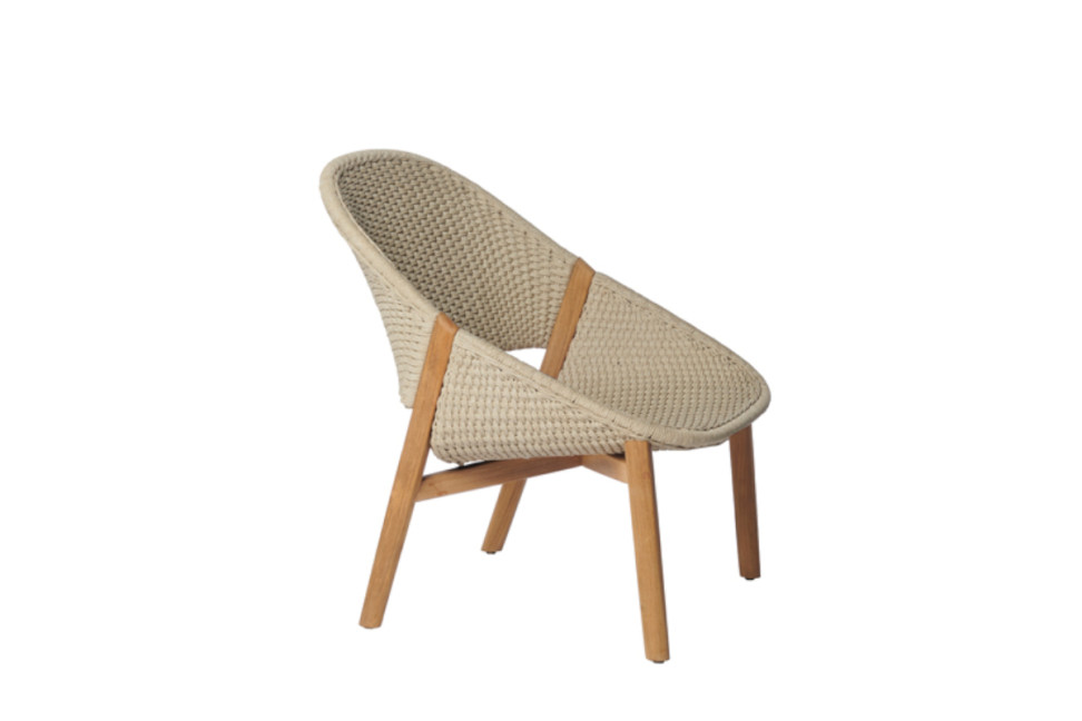 Le fauteuil d'extérieur Elio, conçu par le designer Yabu Pushelberg en collaboration avec Tribù, se caractérise par un large et profond siège à la forme accueillante en cocon. La structure est en teck naturel et est principalement soutenue par les pieds arrière. Le siège est disponible dans les couleurs Lin, Wengé et Mousse, tissé à la main et composé de fils de corde Tricord aux douces nuances de couleur, rappelant celles de la lumière naturelle.