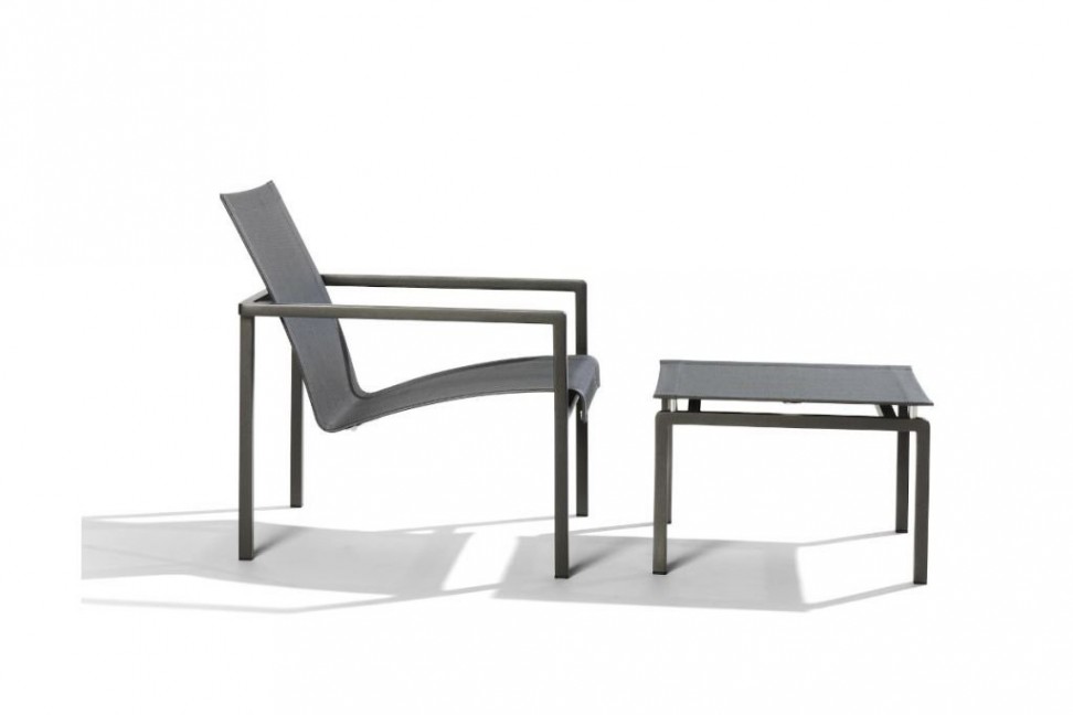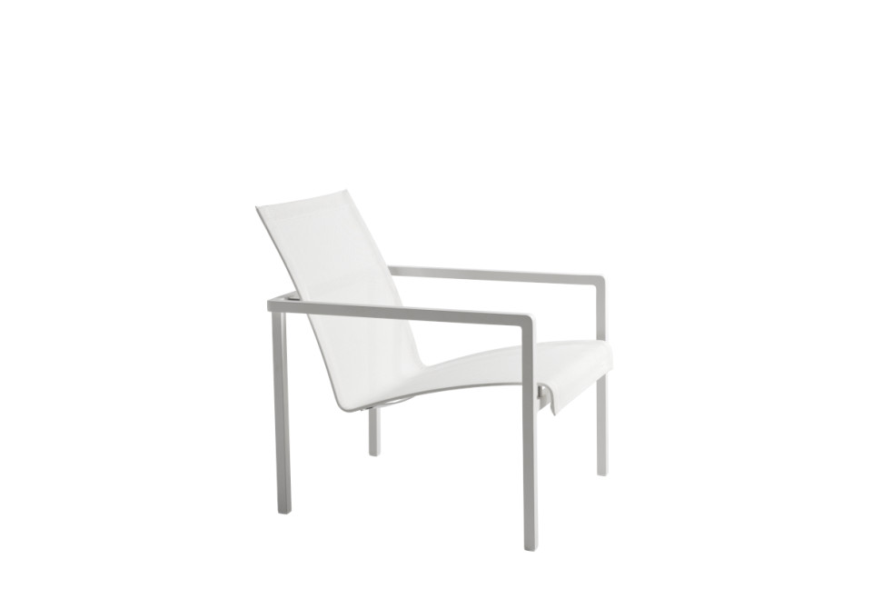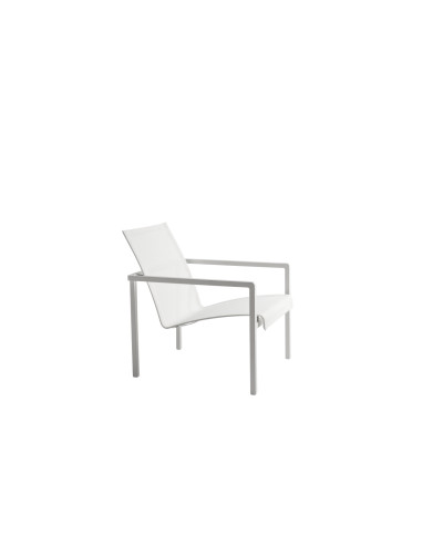 La petit fauteuil pour extérieur Natal Alu, conçue par les designers du Studio Segers pour Tribù, présente une structure en aluminium avec accoudoirs aux angles arrondis, sur laquelle s'intègre un confortable siège courbé en Batyline® qui semble flotter. Les matériaux qui la composent sont résistants aux intempéries, entièrement recyclables et faciles à entretenir. La petit fauteuil Natal Alu est disponible avec une finition blanche et wengé et peut être accompagnée d'un confortable repose-pieds.