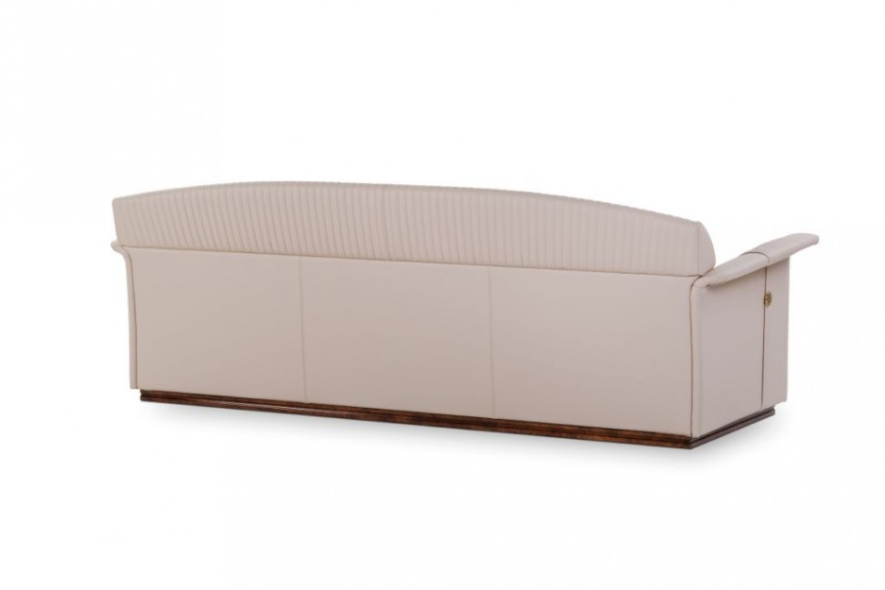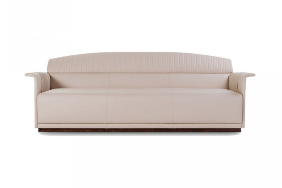 Le canapé Madison, conçu par Andrea Bonini pour Turri, s'inspire des voitures anciennes des années 50, affichant une élégance typiquement rétro. Entièrement revêtu de cuir ou de tissu, à l'exception de la base en bois, Madison est disponible en trois tailles différentes, chacune disponible avec un dossier lisse ou avec un capitonnage à lignes verticales.Turri