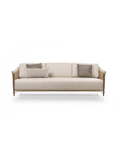 Le canapé Melting Light est né de la créativité de Frank Jiang pour la marque italienne Turri. Disponible en version deux ou trois places, Melting Light affiche une ligne élégante et décontractée qui s'éloigne des conventions pour offrir un design presque unique. Ce canapé présente une structure extérieure en cuir, des coussins de siège et de dossier recouvrables en cuir ou en tissu, une structure en bois avec des accoudoirs qui dépassent vers l'extérieur pour garantir un confort maximal et des détails élégants en or brossé.Turri