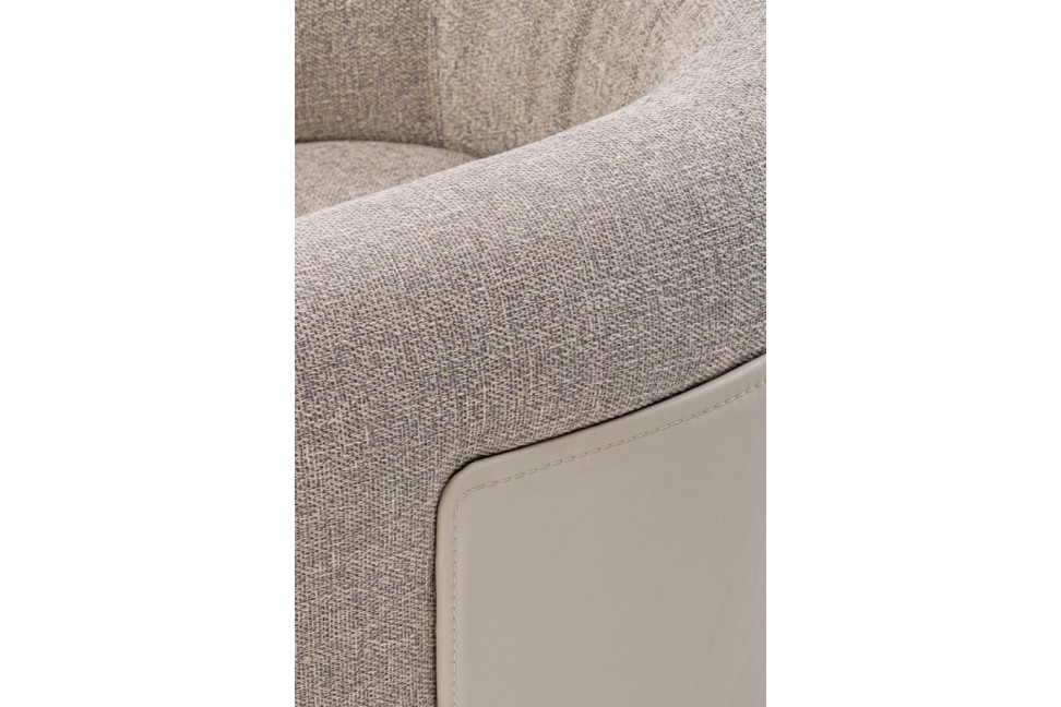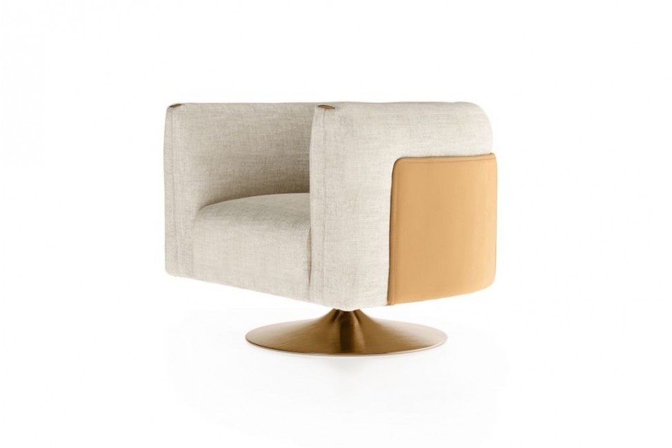 Le fauteuil de la collection Soul, nouveauté 2021 de la marque Turri, reprend le concept du canapé avec la même structure enveloppante, enrichie à l'arrière par un panneau en cuir. La base en métal est disponible en version fixe ou pivotante. Le fauteuil Soul peut être recouvert de cuir ou de tissu ou d'un mélange des deux.Turri