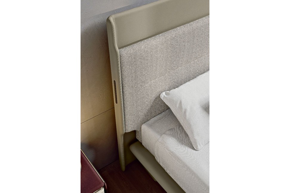 Le lit de la collection Zero de Turri, conçu par Andrea Bonini, présente une structure fine et linéaire à laquelle s'oppose la tête de lit, de dimensions beaucoup plus importantes. Le contraste entre le revêtement en tissu et celui en cuir est complété par la couture centrale de la tête de lit qui confère à Zero son trait distinctif. Le lit est disponible en version standard et king size.Turri