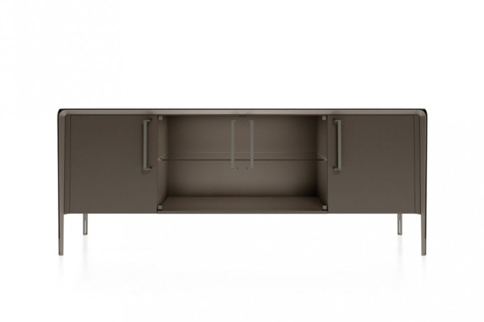 La collection Milano a été conçue par le studio SBGA | Blengini Ghirardelli pour Turri. Le buffet Milano est un produit élégant et sophistiqué avec une structure en bois laqué et de fines jambes en métal avec des inserts en cuir.