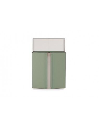 La vitrine Zenit de Turri, nouveauté 2020 conçue par Andrea Bonini, veut suggérer une sensation de légèreté. Les portes de la vitrine Zenit, courbées et revêtues de cuir, semblent envelopper et soutenir la vitrine en verre qui se trouve en haut. On retrouve donc le motif de superposition entre éléments qui caractérise toute la collection Zenit. La vitrine est disponible en différentes finitions, les pieds sont en métal chromé.Turri