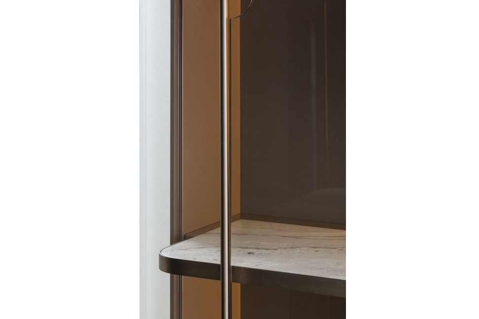 La vitrine Zero, conçue par Andrea Bonini pour Turri, affiche le point fort de la collection éponyme : le contraste et l'union de matériaux de première qualité. Des pieds en métal à la structure en bois et en verre, avec des étagères internes en marbre bordé de métal. Disponible en diverses finitions de l'échantillon Turri, Zero est également équipée d'un système d'éclairage interne à LED pratique.Turri