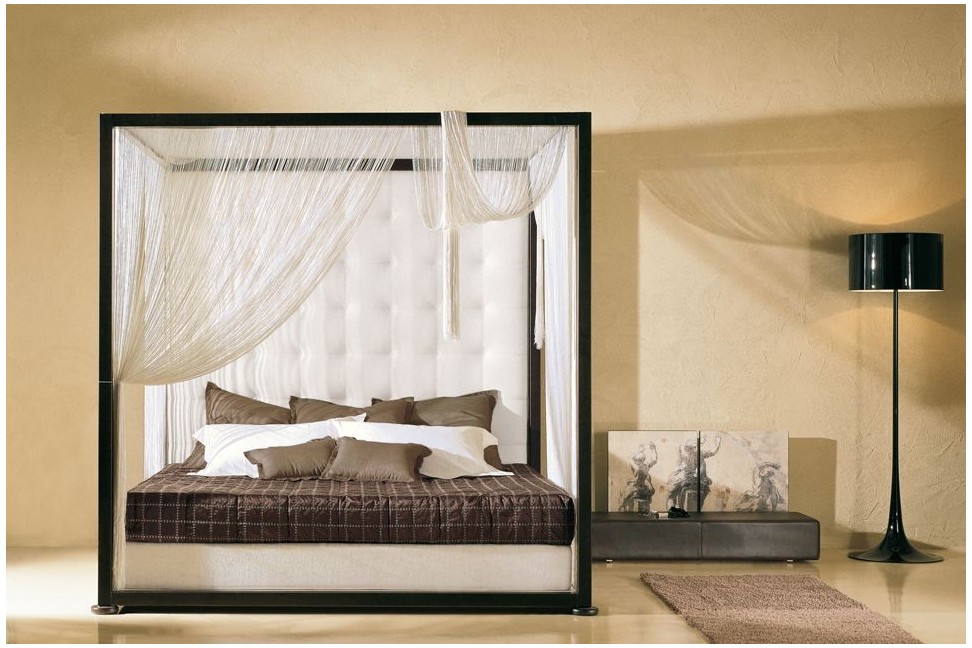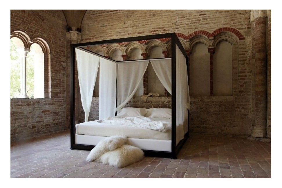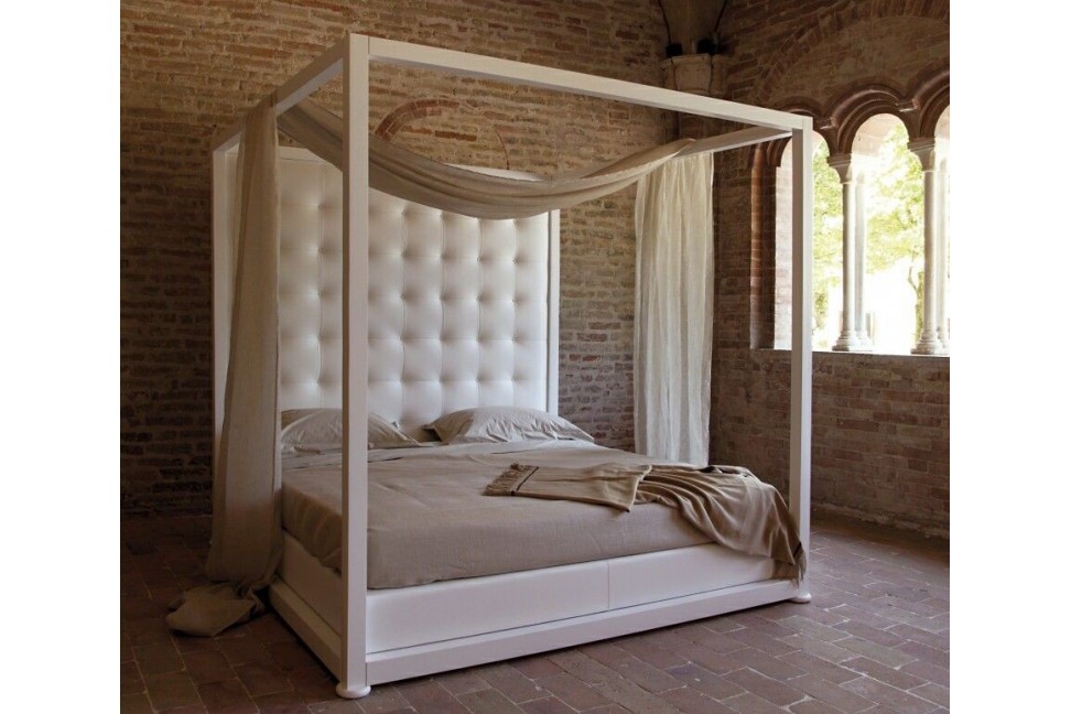 Le lit Ginevra représente la simplicité et l'élégance du lit à baldaquin, avec une tête de lit disponible en différentes variantes.