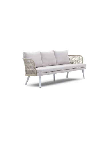 Le canapé d'extérieur Emma de Varaschin, conçu par la designer Monica Armani, fait partie d'une large famille de produits comprenant des canapés deux ou trois places. Le tissage élégant du dossier, réalisé à la main en corde synthétique, est la caractéristique distinctive de toute la collection.
