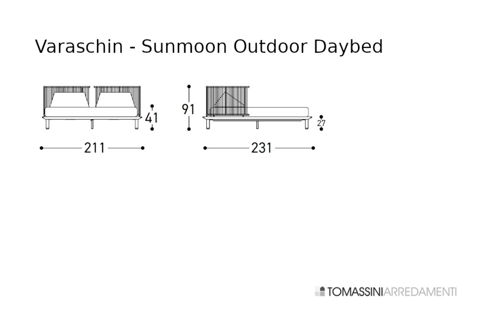 Le daybed outdoor Sunmoon est disponible dans les dimensions suivantes : cm.211x231x91h.