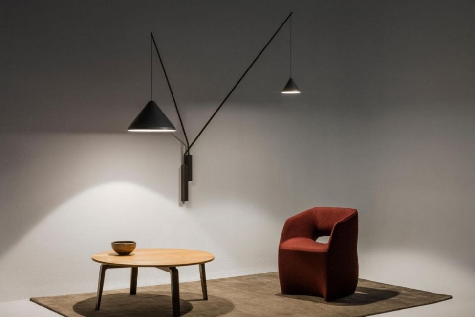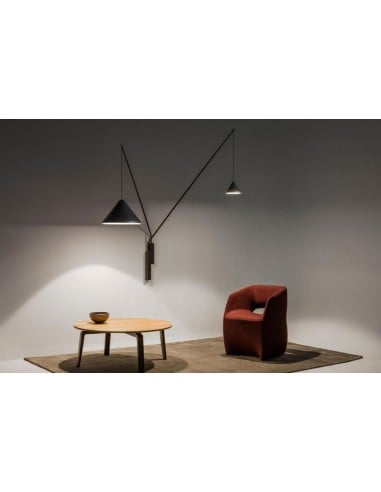 La collection de lampes North signée par la célèbre marque d'éclairage Vibia, naît d'un projet développé par le designer polyvalent Arik Levy.North présente une structure en acier et en fibre de carbone au design raffiné et aux lignes sobres et définies qui s'adaptent parfaitement à tout type d'environnement, qu'il soit domestique ou contract. Le diffuseur conique est réalisé en méthacrylate et est suspendu par une structure fixée au mur qui permet de diffuser la lumière dans l'ensemble de l'espace.